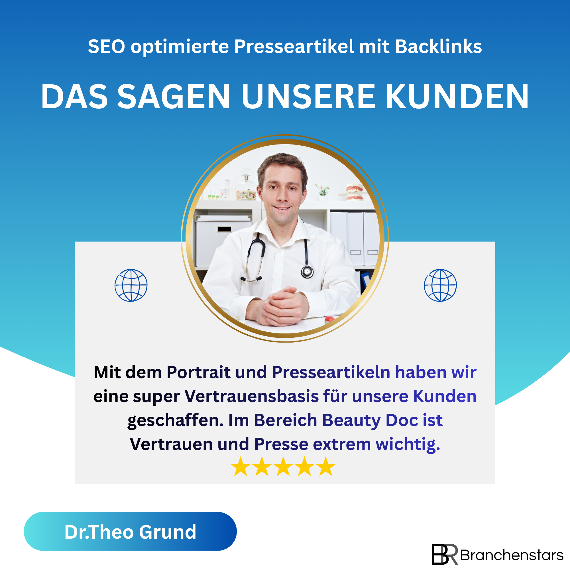 Wir erstellen einen SEO-optimierten Presseartikel über Sie und Ihr Unternehmen mit Links zu Ihrer Webseite. Nach Ihren Wünschen und Vorgaben. Lesbar bei Google, ChatGPT, Gemini und co.